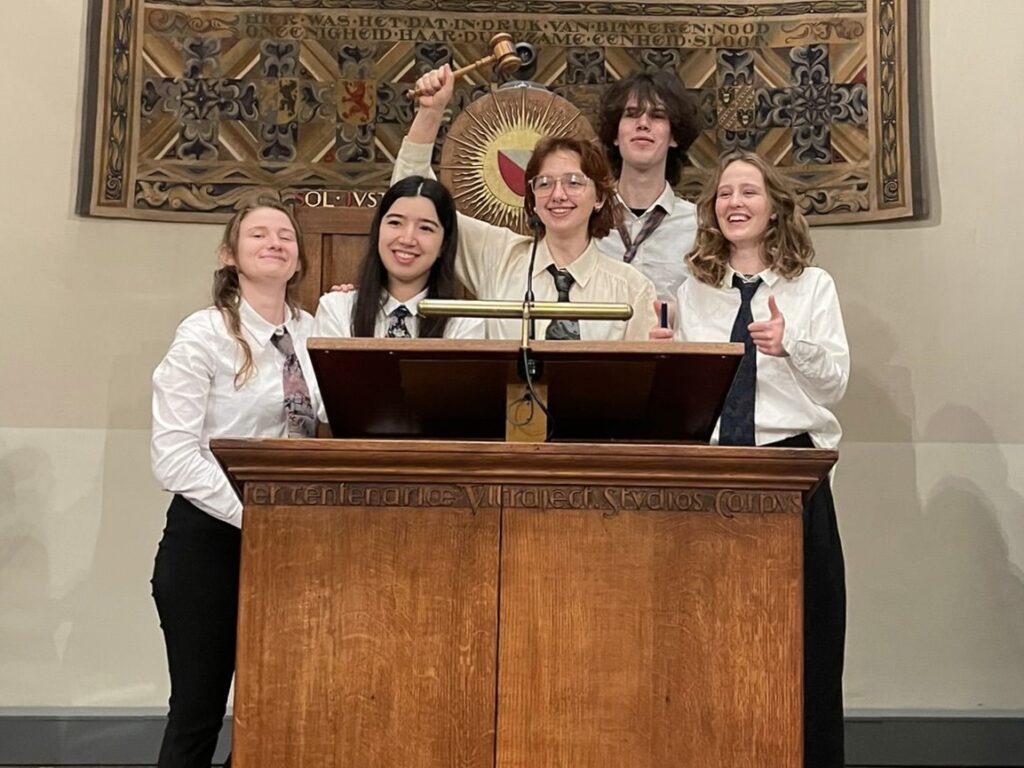 Van links naar rechts: Ilse Wolzak (commissaris intern), Sema Piskinel (secretaris), Thirza Bier (voorzitter), Ben Higgins (penningmeester), Daria Tyżlik-Carver (commissaris extern).